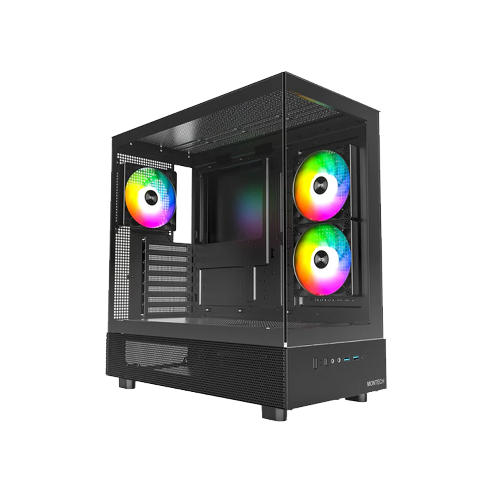 The Budget Hex gaming PC offers powerful performance with its powerful AMD Ryzen 5 7500F processor, MSI PRO B650M motherboard, and NVIDIA GeForce RTX 4060 OC graphics card. Featuring 32GB of blazing fast DDR5 6000MHz CL30 Corsair Vengeance RAM and a 1TB Kingston NV3 M.2 SSD, this build ensures seamless multitasking and ample storage. Housed in the sleek Montech XR case and powered by a Corsair CX 550W power supply, the Budget Hex delivers top-notch performance at an affordable price, perfect for gamers and power users alike.